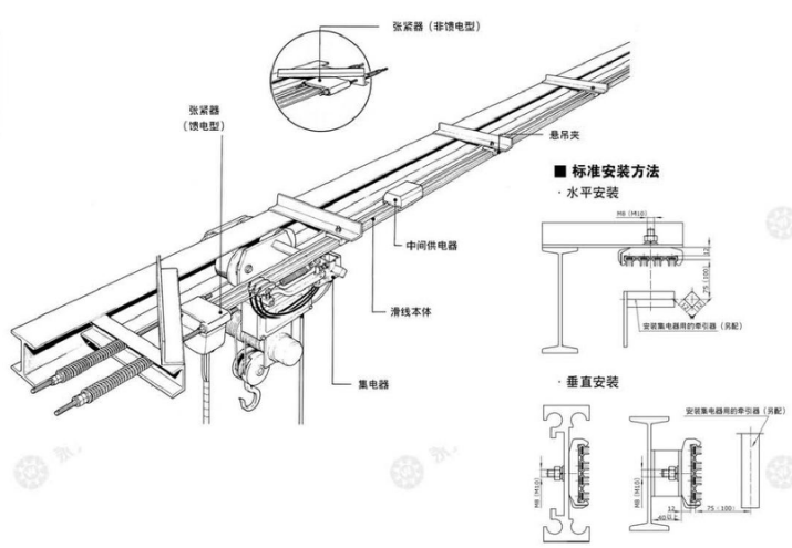3. 在集電器安裝過程中(指JDS型集電器),若不易確定安裝尺寸時,可使集電器橫桿與滑線保持平行達(dá)到安裝要求。